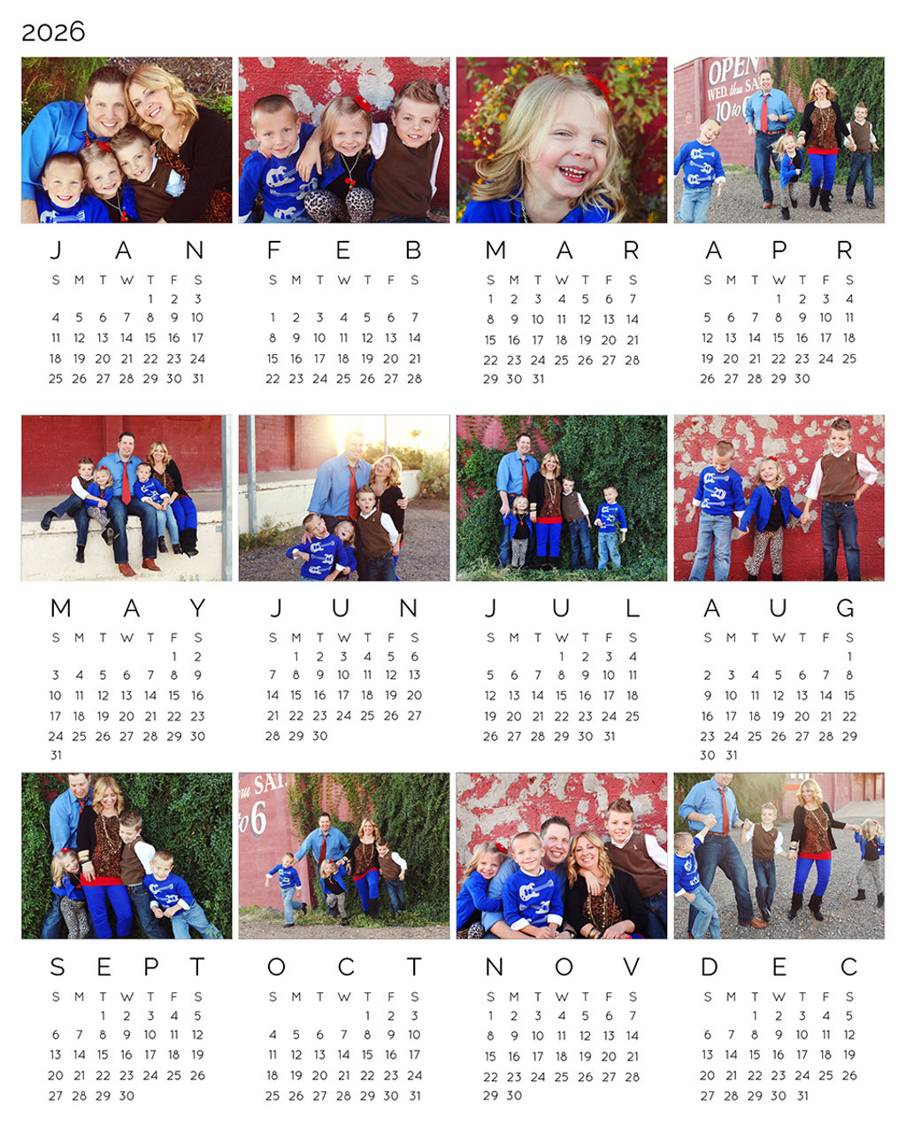 The One Page Photo Calendar is printed on your choice of premium photo paper in just 1-2 business days. Choose your design and upload your photos using our easy drag-and-drop ordering platform.8x10"
