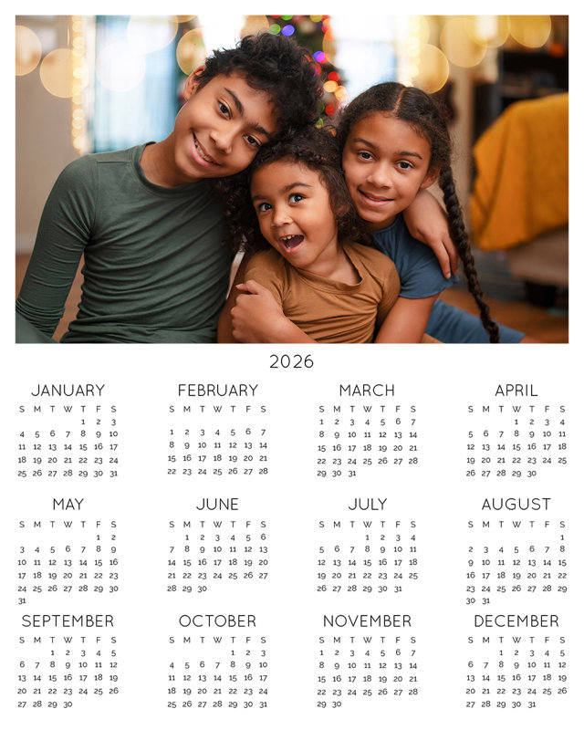 The One Page Photo Calendar is printed on your choice of premium photo paper in just 1-2 business days. Choose your design and upload your photos using our easy drag-and-drop ordering platform.8x10"