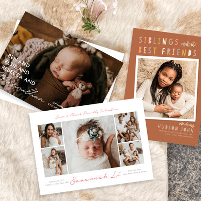Celebrate life’s sweetest beginnings with birth announcements. Share the joy of your baby’s arrival with beautifully crafted announcement cards that feature your little one’s first photos.
