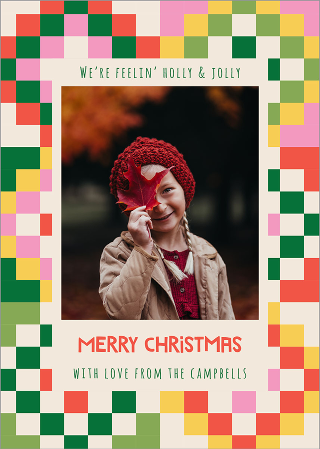 Add your photos and personalized details to make a Christmas Card that’s truly your own with easy-to-use design tools.