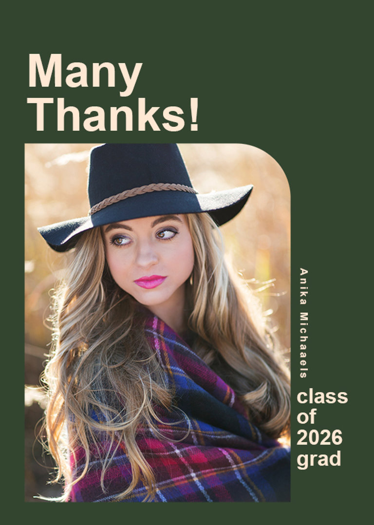 Add your photos and personalized details to make a Graduation Thank You Card that’s truly your own with easy-to-use design tools.