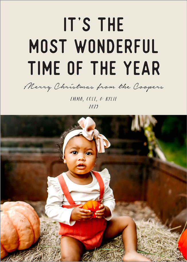 Add your photos and personalized details to make a Holiday Card that’s truly your own with easy-to-use design tools.