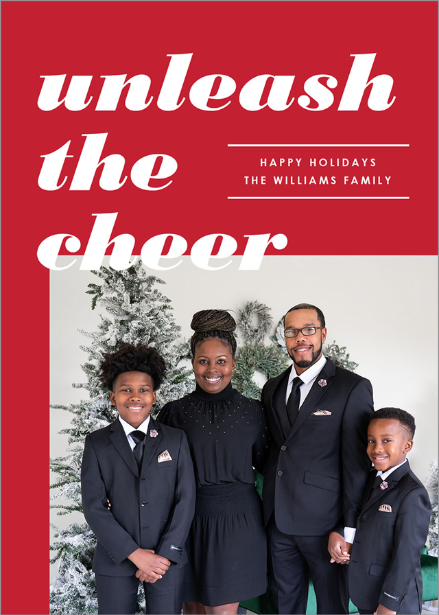 Add your photos and personalized details to make a Holiday Card that’s truly your own with easy-to-use design tools.