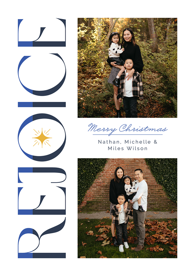 Add your photos and personalized details to make a Christmas Card that’s truly your own with easy-to-use design tools.