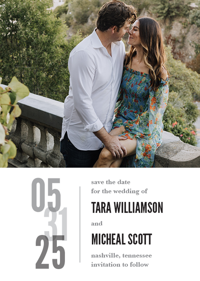 Announce your upcoming wedding with a gorgeous Save the Date card that matches your unique style and theme.