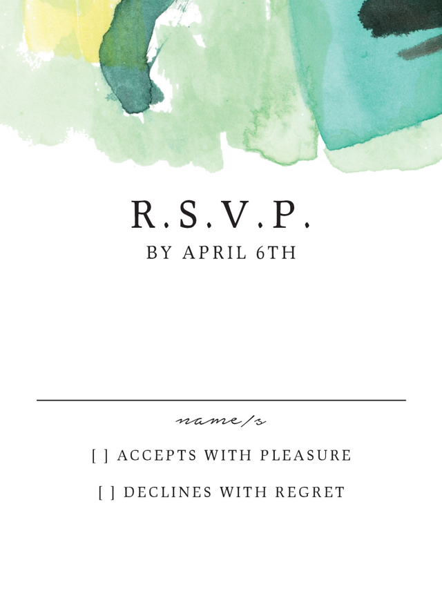 Complete your wedding card set with an artist-designed Wedding RSVP Card printed with premium quality.