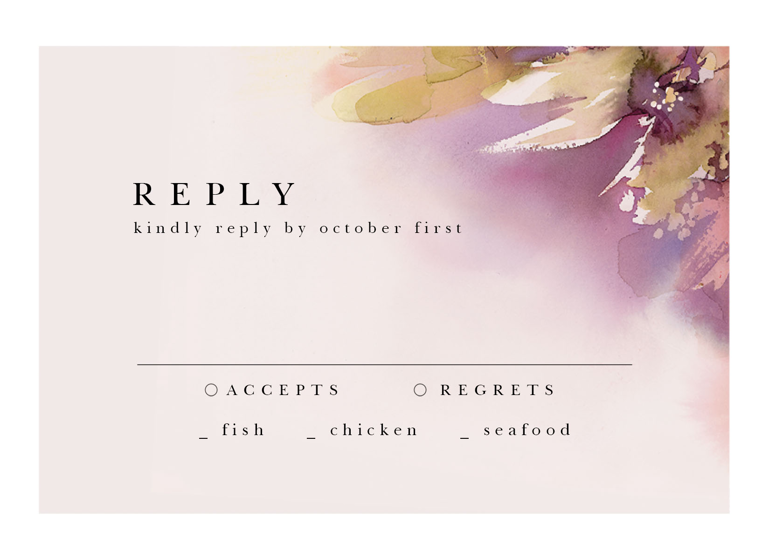 Complete your wedding card set with an artist-designed Wedding RSVP Card printed with premium quality.