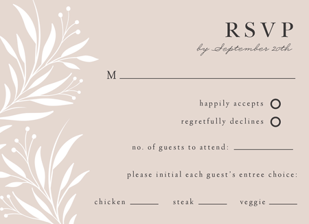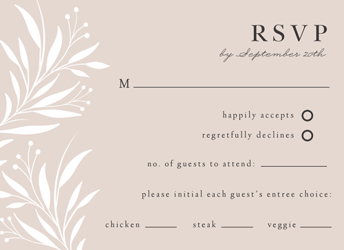 Complete your wedding card set with an artist-designed Wedding RSVP Card printed with premium quality.