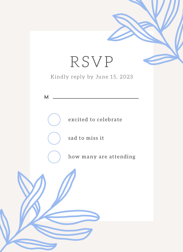 Complete your wedding card set with an artist-designed Wedding RSVP Card printed with premium quality.