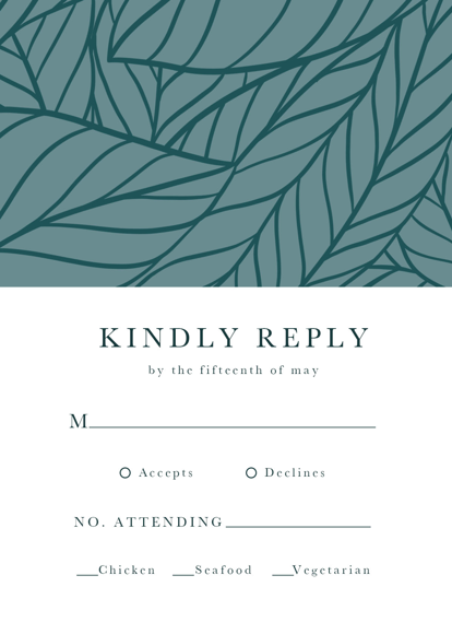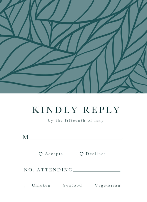 Complete your wedding card set with an artist-designed Wedding RSVP Card printed with premium quality.
