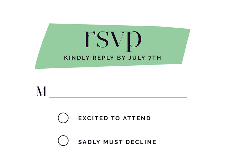 Complete your wedding card set with an artist-designed Wedding RSVP Card printed with premium quality.