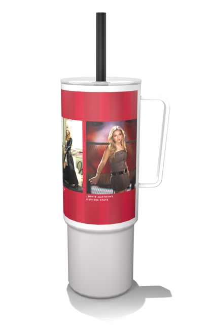 Create a customized 32oz MiiR photo tumbler with a built-in handle and flexible silicone straw for easy, on-the-go hydration.