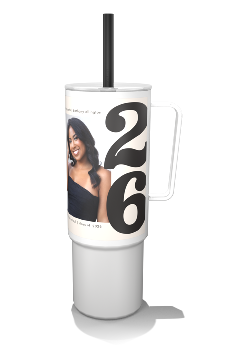 Create a customized 32oz MiiR photo tumbler with a built-in handle and flexible silicone straw for easy, on-the-go hydration.