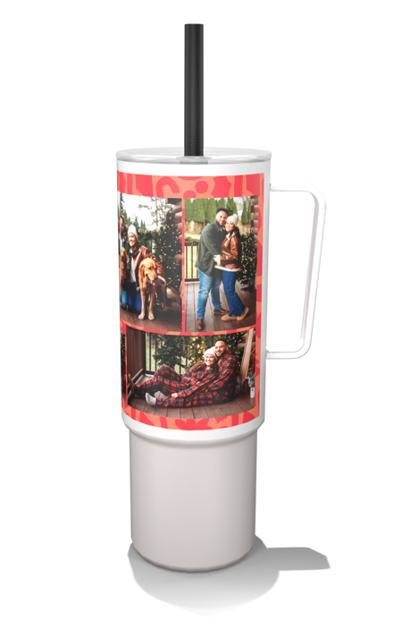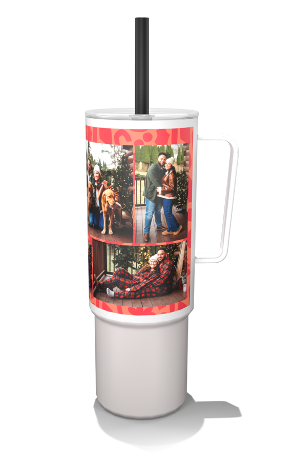 Create a customized 32oz MiiR photo tumbler with a built-in handle and flexible silicone straw for easy, on-the-go hydration.