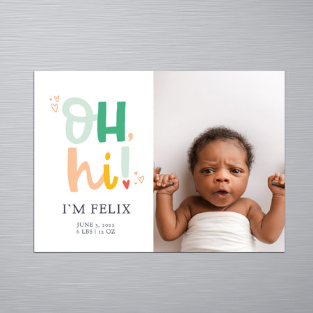 Let your little one say hello with birth announcement magnets. Sweet, stylish, and easy to personalize, they’re a lasting way for friends and family to enjoy your baby’s photo day after day.