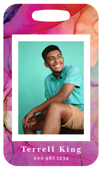 Easily spot your bag in a crowd with a custom Photo Luggage Tag, which measures 2.5" by 4.5" and is printed on premium aluminum for durability.Size