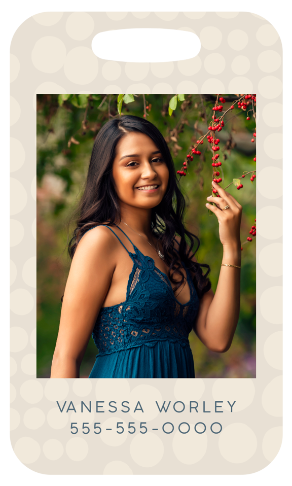 Easily spot your bag in a crowd with a custom Photo Luggage Tag, which measures 2.5" by 4.5" and is printed on premium aluminum for durability.2.5x4.25"