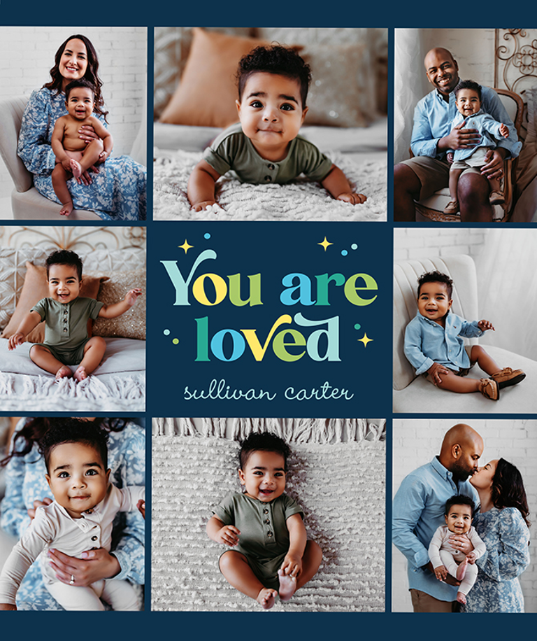 Create a one-of-kind photo blanket with your favorite memories or personalize one of our designs with a family name.
