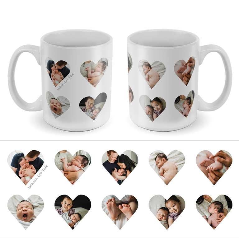 Easily create your dishwasher friendly & microwave safe ceramic coffee mug by adding your favorite photos & personalized text.