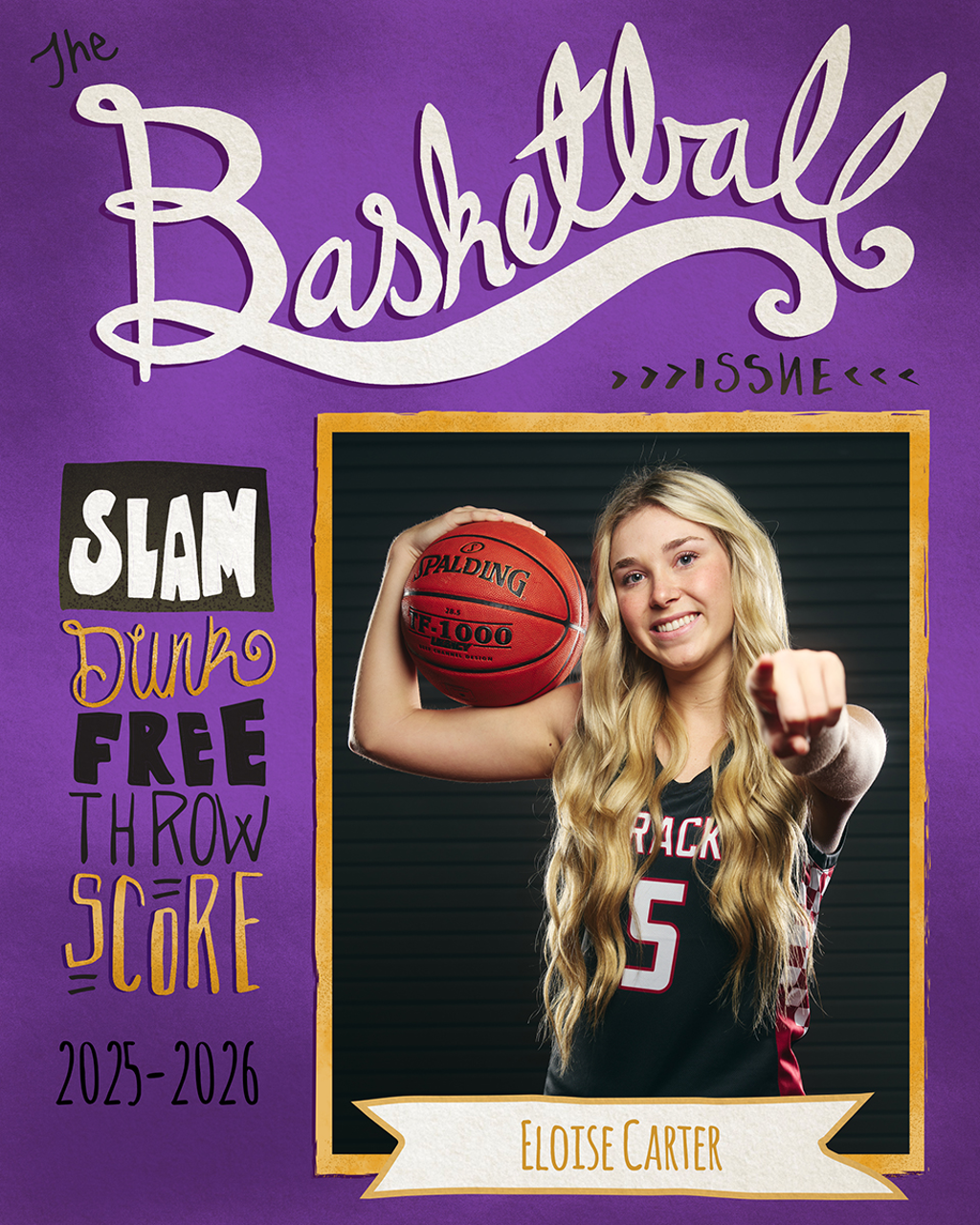 Each Magazine Cover is a one-sided personalized 8x10 print that features a magazine-style design with bold headlines, player photo, name, team, and season details.Size