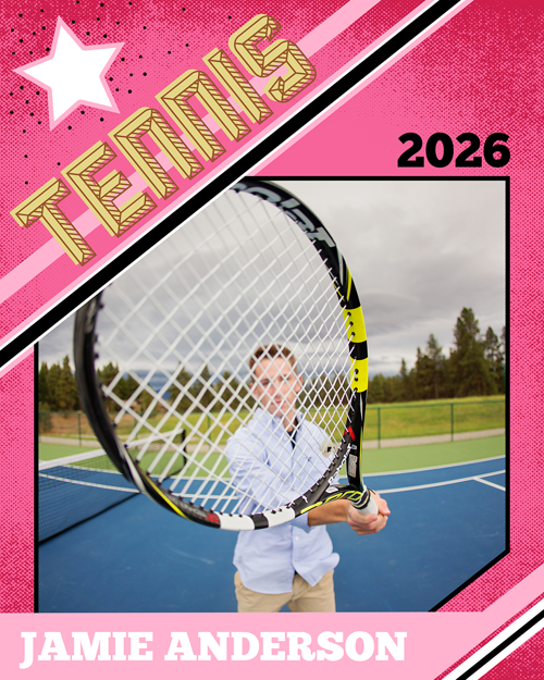Each Magazine Cover is a one-sided personalized 8x10 print that features a magazine-style design with bold headlines, player photo, name, team, and season details.