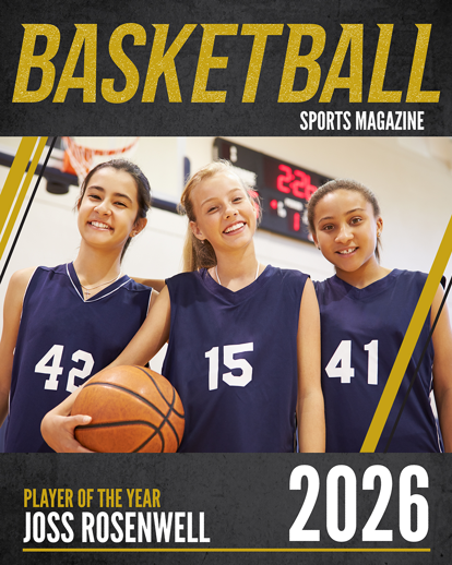 Each Magazine Cover is a one-sided personalized 8x10 print that features a magazine-style design with bold headlines, player photo, name, team, and season details.