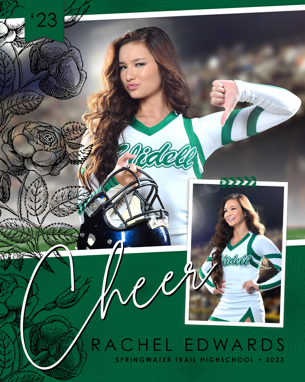 Each Memory Mate is a one-sided 8x10 print that features a stylish sports-themed design with space for player name, school, jersey number, and other details.Size
