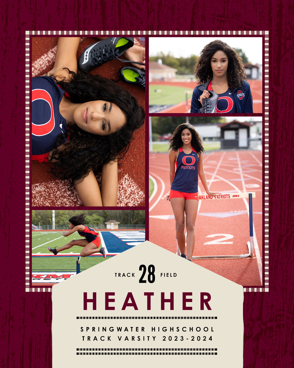 Each Memory Mate is a one-sided 8x10 print that features a stylish sports-themed design with space for player name, school, jersey number, and other details.
