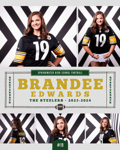 Each Memory Mate is a one-sided 8x10 print that features a stylish sports-themed design with space for player name, school, jersey number, and other details.Size