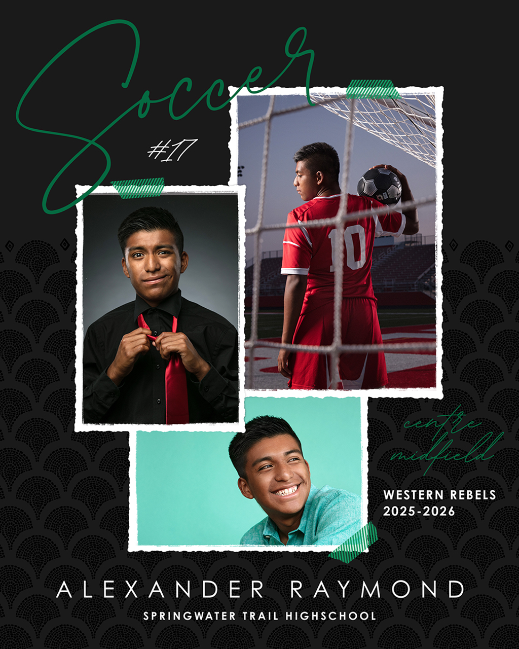Each Memory Mate is a one-sided 8x10 print that features a stylish sports-themed design with space for player name, school, jersey number, and other details.