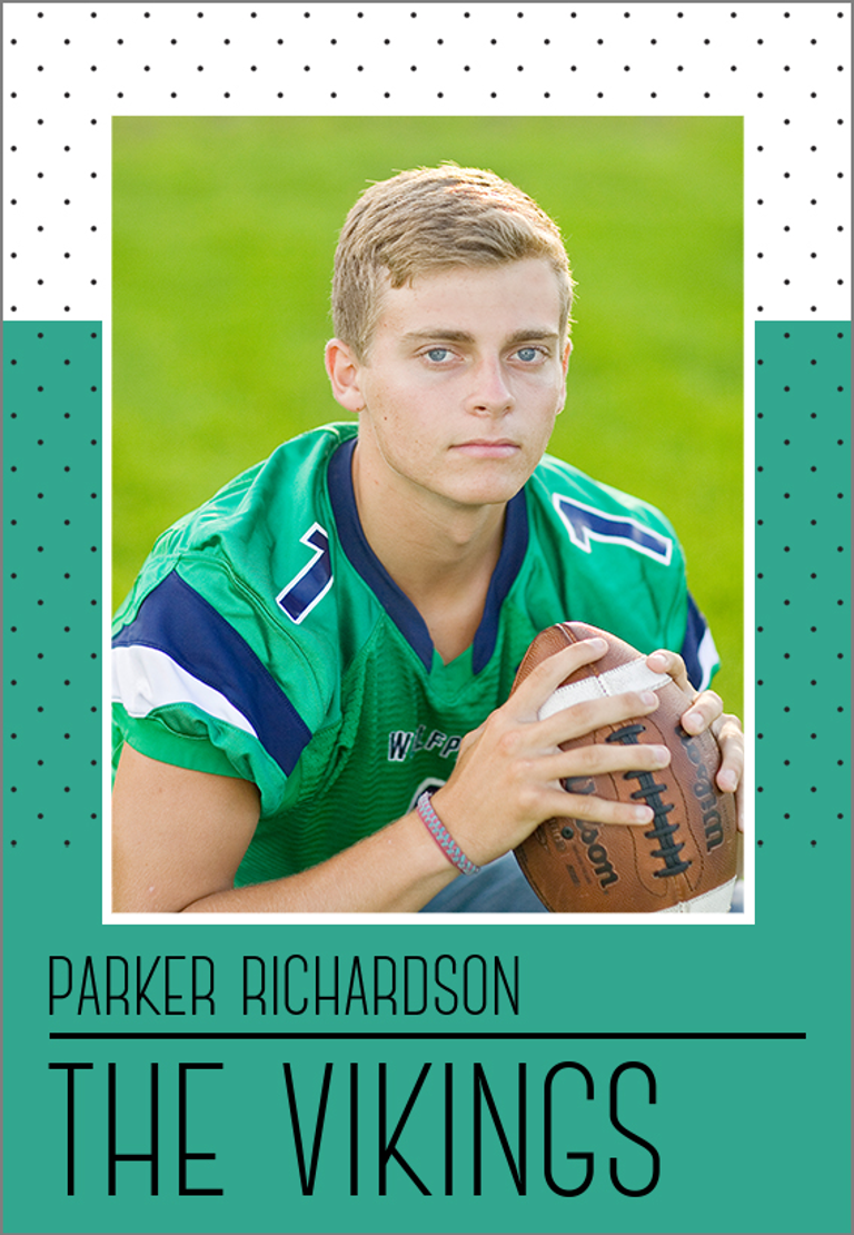 A collection of sports trading cards from Mpix showing sports photos and personalized text for the athlete, school, and team name.Show off your star athlete with a pro-quality, personalized sports Photo Trading Card from Mpix.