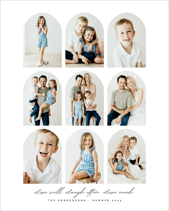 Make a tasteful Photo Collage for your walls with your treasured snapshots and personalize with details like your name, date and more.