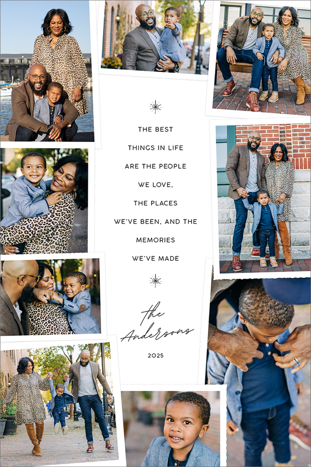 Make a tasteful Photo Collage for your walls with your treasured snapshots and personalize with details like your name, date and more.