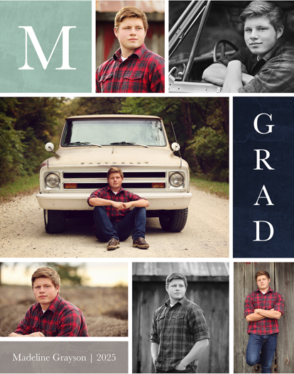 Make a tasteful Photo Collage for your walls with your treasured snapshots and personalize with details like your name, date and more.
