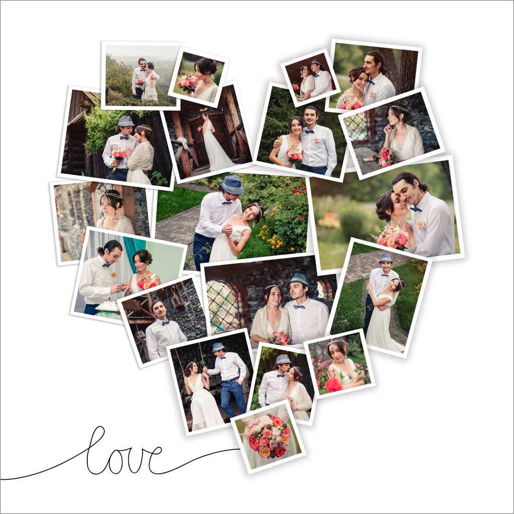 Make a tasteful Photo Collage for your walls with your treasured snapshots and personalize with details like your name, date and more.