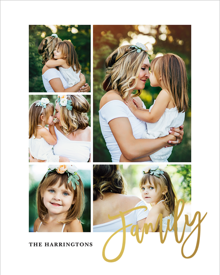 Make a tasteful Photo Collage for your walls with your treasured snapshots and personalize with details like your name, date and more.