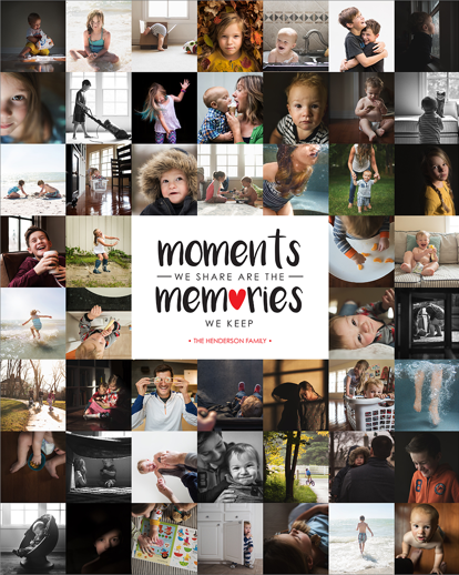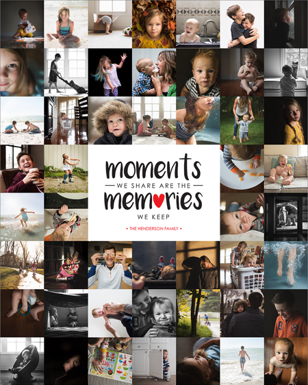 Make a tasteful Photo Collage for your walls with your treasured snapshots and personalize with details like your name, date and more.
