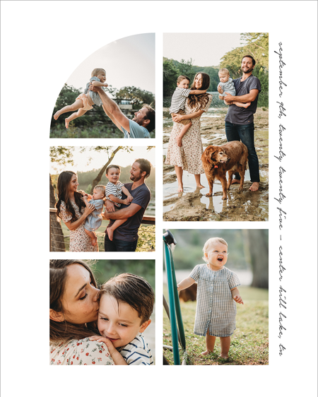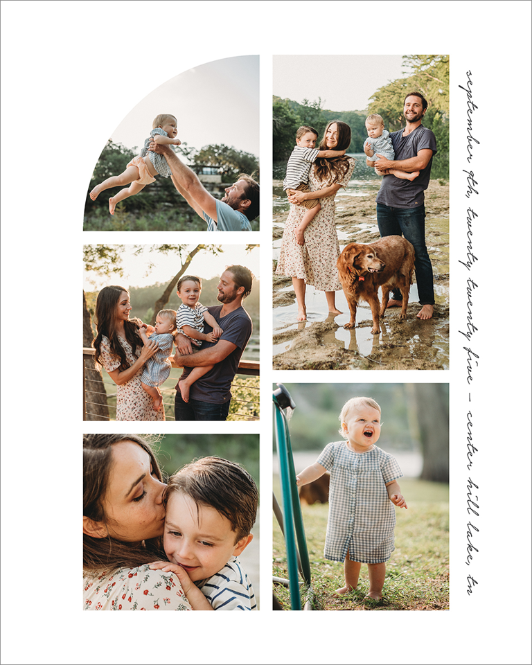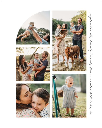 Make a tasteful Photo Collage for your walls with your treasured snapshots and personalize with details like your name, date and more.