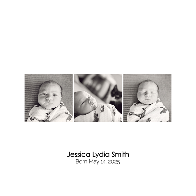 Make a tasteful Photo Collage for your walls with your treasured snapshots and personalize with details like your name, date and more.