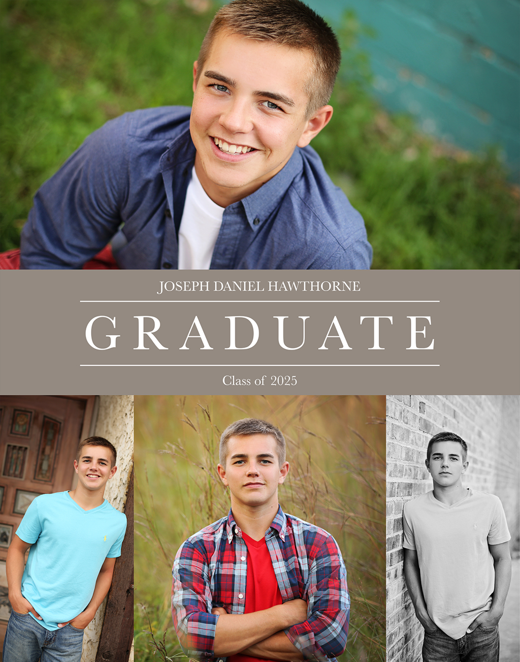 Make a tasteful Photo Collage for your walls with your treasured snapshots and personalize with details like your name, date and more.