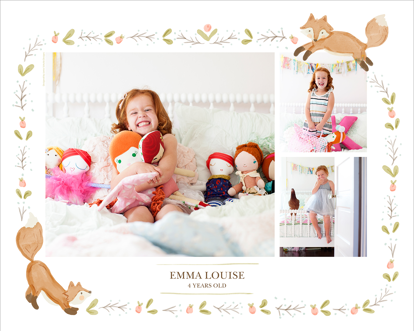 Make a tasteful Photo Collage for your walls with your treasured snapshots and personalize with details like your name, date and more.