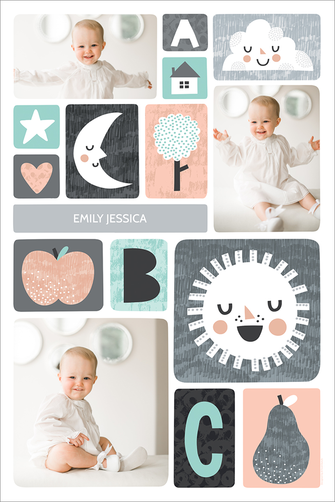 Make a tasteful Photo Collage for your walls with your treasured snapshots and personalize with details like your name, date and more.