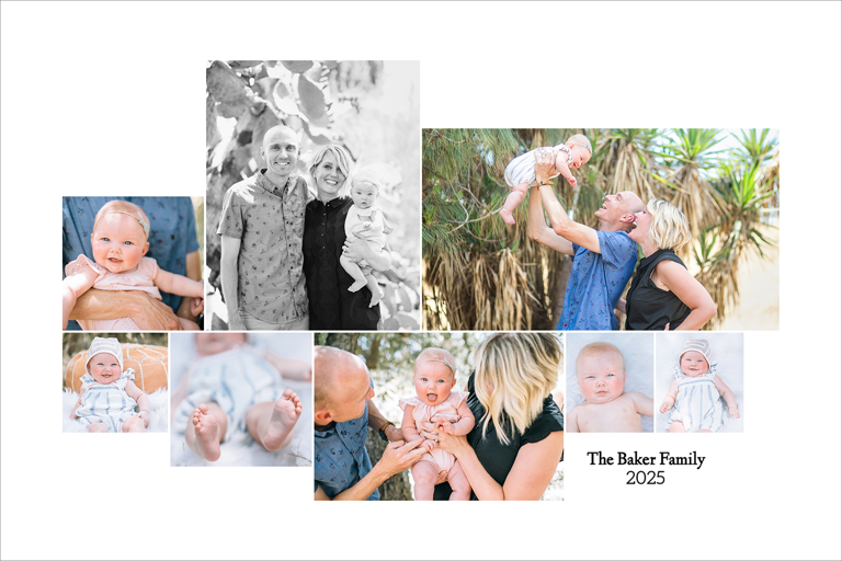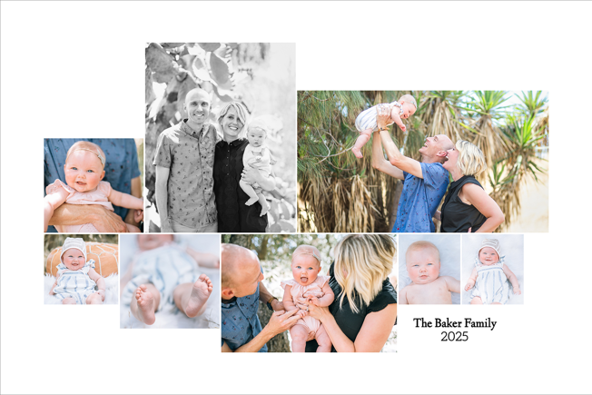 Make a tasteful Photo Collage for your walls with your treasured snapshots and personalize with details like your name, date and more.
