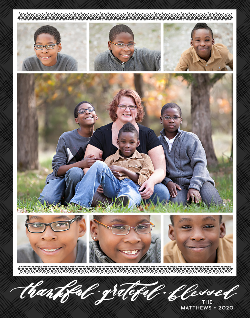 Make a tasteful Photo Collage for your walls with your treasured snapshots and personalize with details like your name, date and more.