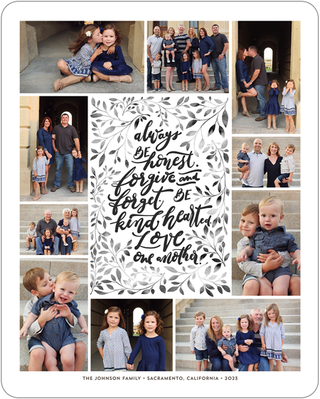 Make a tasteful Photo Collage for your walls with your treasured snapshots and personalize with details like your name, date and more.
