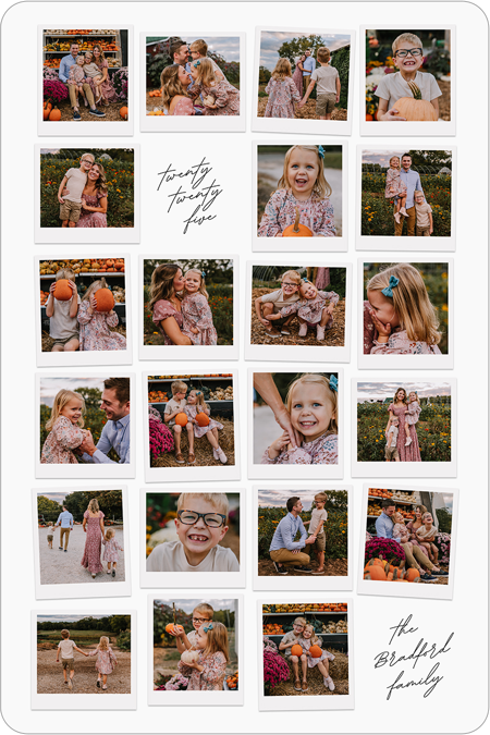 Make a tasteful Photo Collage for your walls with your treasured snapshots and personalize with details like your name, date and more.
