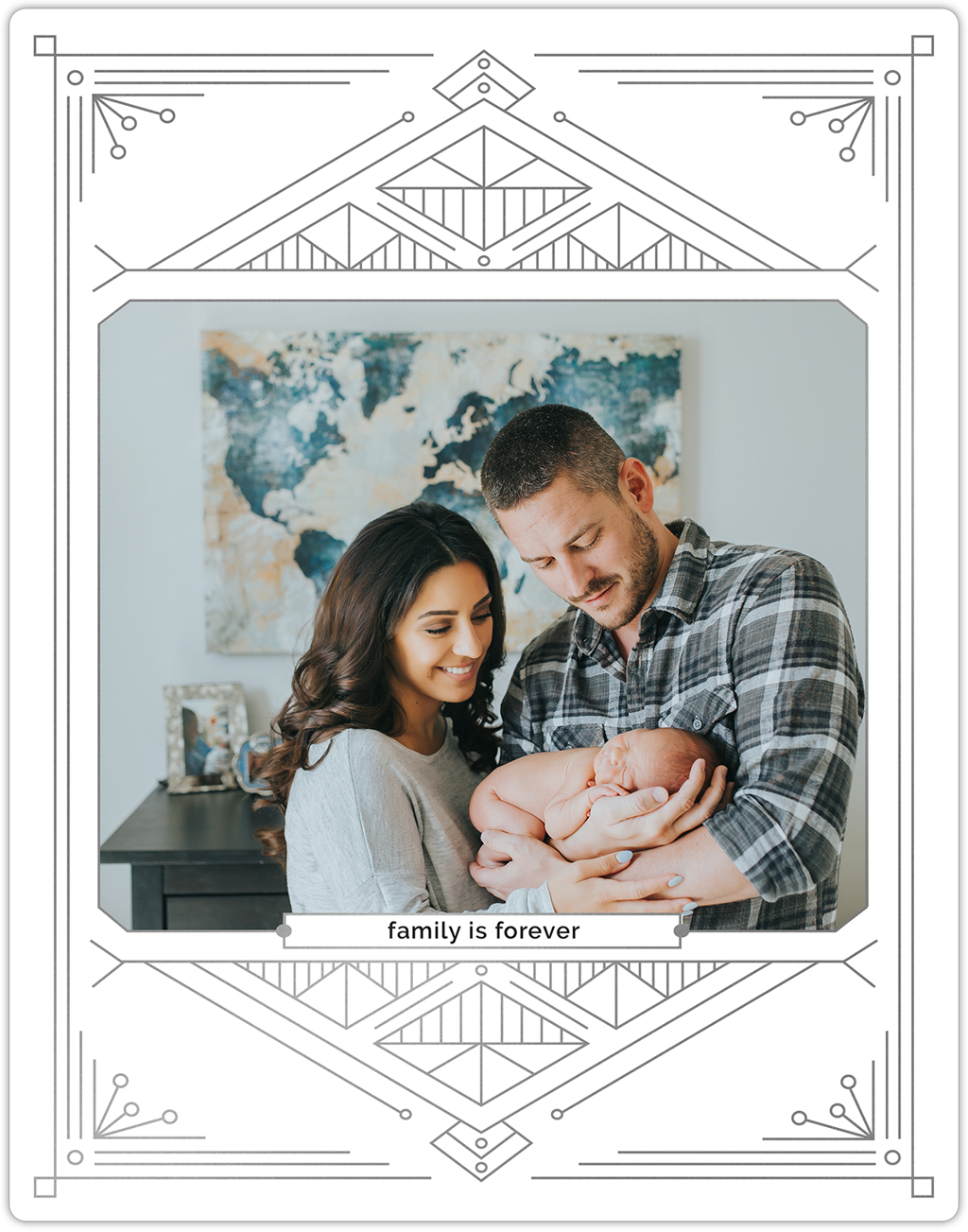 Make a tasteful Photo Collage for your walls with your treasured snapshots and personalize with details like your name, date and more.