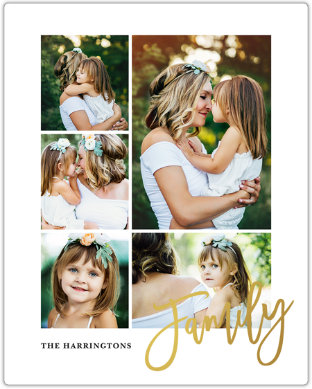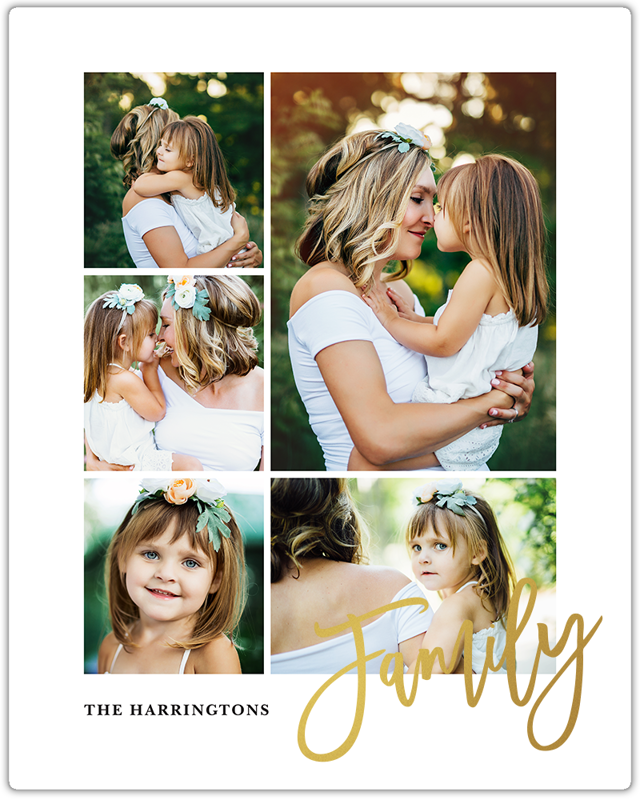 Make a tasteful Photo Collage for your walls with your treasured snapshots and personalize with details like your name, date and more.