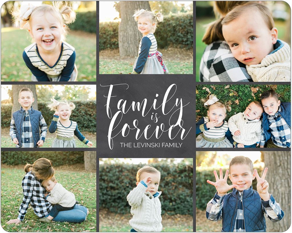 Make a tasteful Photo Collage for your walls with your treasured snapshots and personalize with details like your name, date and more.