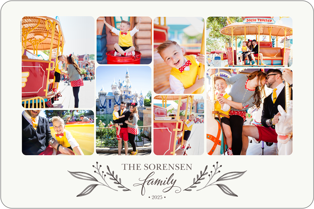 Make a tasteful Photo Collage for your walls with your treasured snapshots and personalize with details like your name, date and more.